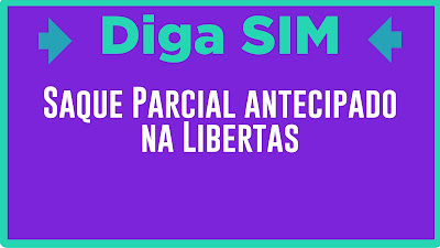 Atualmente, a Fundação Libertas não oferece o saque antecipado. Por esta razão, o De Olho na Libertas está reunindo assinaturas dos participantes que queiram que ele seja implantado. O levantamento de assinaturas favoráveis tem o objetivo de sensibilizar a Fundação Libertas a implantar o saque parcial antecipado.É muito importante que você se inscreva no YouTube do Coletivo De Olho na Libertas e receba um aviso sempre que um novo vídeo for postado - http://www.youtube.com/channel/UC0FfS-WUc0btMedymOYkXDg?sub_confirmation=1